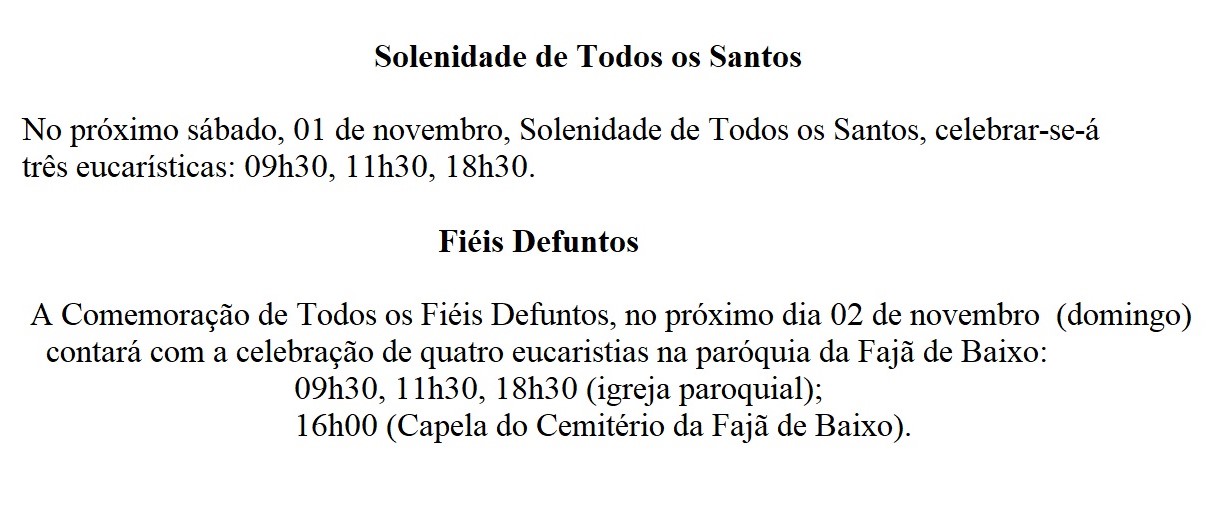 (Não haverá missa das 18.30 durante o mês de julho e agosto)
